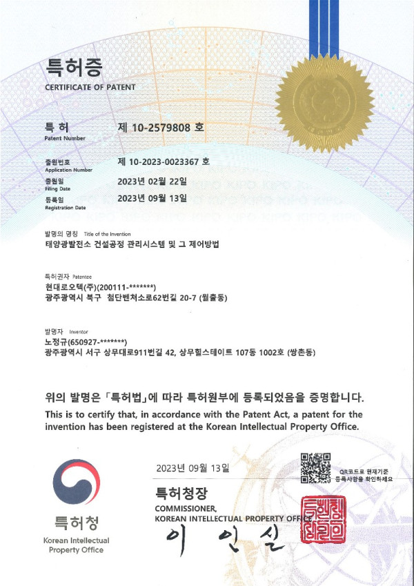 - 다음글강풍 및 낙뢰에 대한 보호기능을 갖는 태양광발전시스템 및 그 제어방법 특허 24.01.17