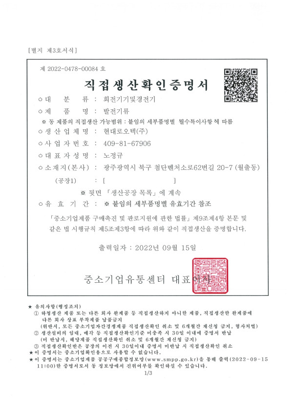 인증서 직접생산확인증명서_회전기기